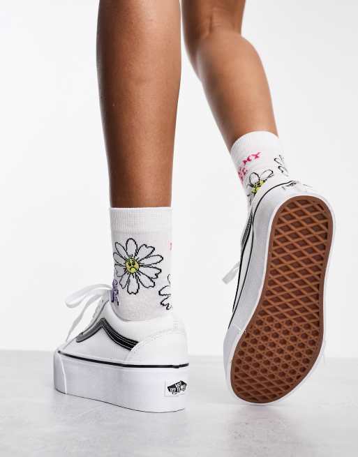 Vans platform cuir clearance, Vans Old Skool Stackform Baskets plateforme en cuir clearance