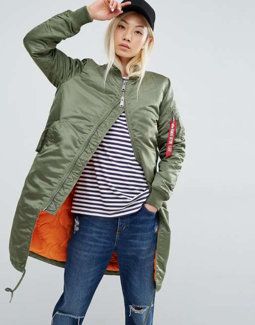 Alpha industries MA 1 Longline Bomber Coat with Gold Zip ASOS