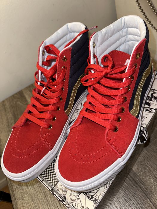Vans Captain Marvel Sk8 Hi Sneakers Lace Up Suede Red Women s 8 Men s 6.5 eBay