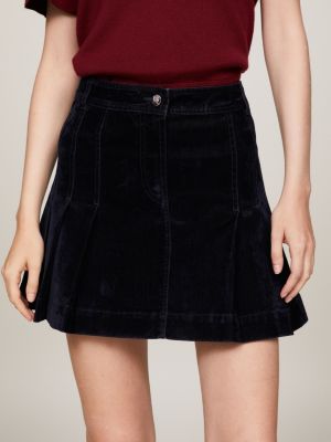 Denim Velvet Pleated Flare Mini Skirt Blue Tommy Hilfiger
