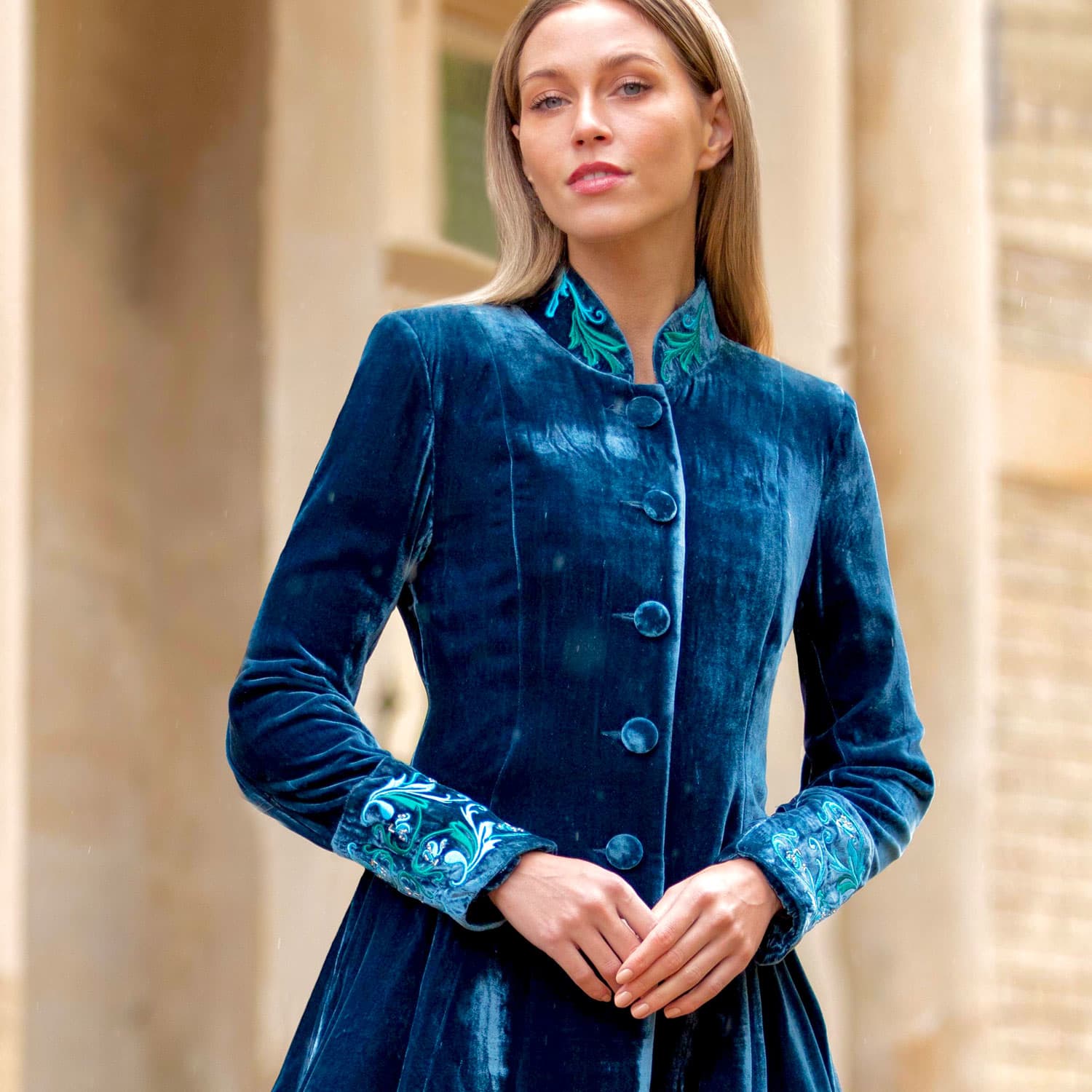 Caspian Blue Velvet Swing Jacket by Beatrice von Tresckow