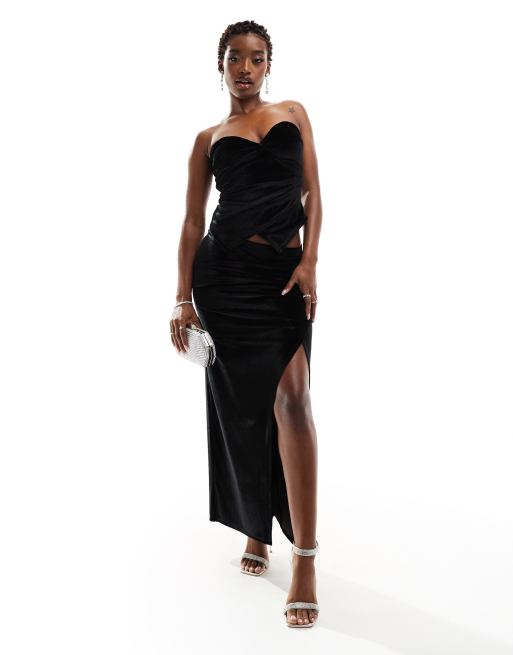 ASOS DESIGN velvet wrap midi skirt with split in black part of a set