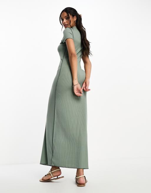 Vero Moda lettuce edge jersey maxi dress in khaki