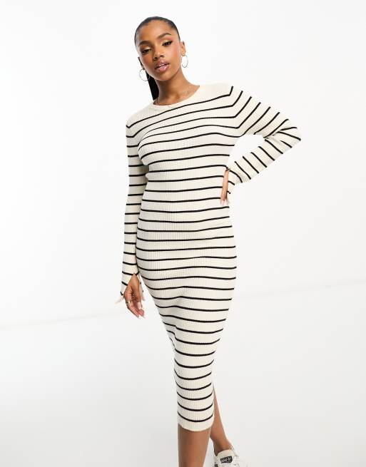Buy VERO MODA Black Striped Polyester Regular Neck Womens Knee