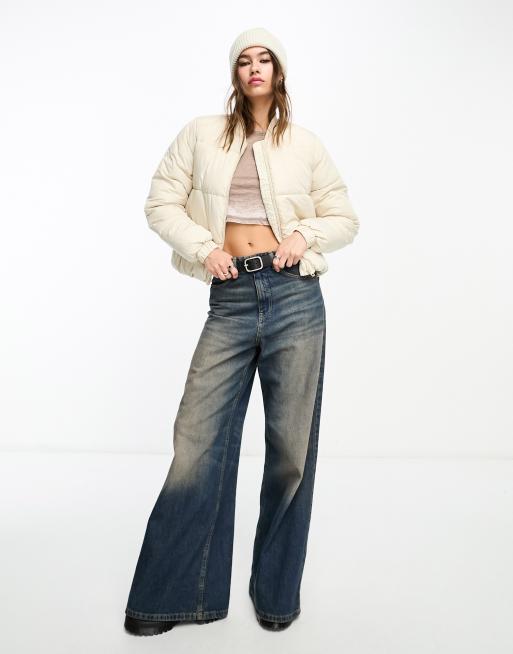 Vero Moda bomber puffer jacket in beige