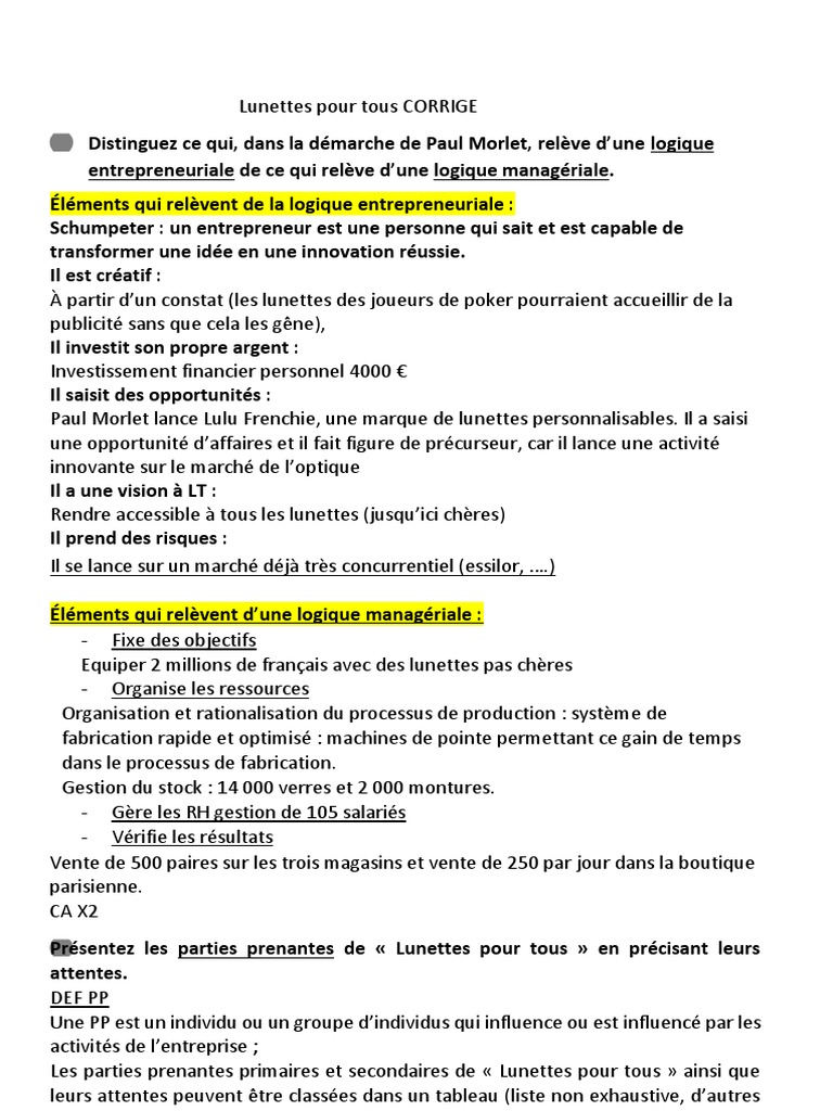 Chapitre 1 Correction Lunettes Pour Tous PDF Partie prenante