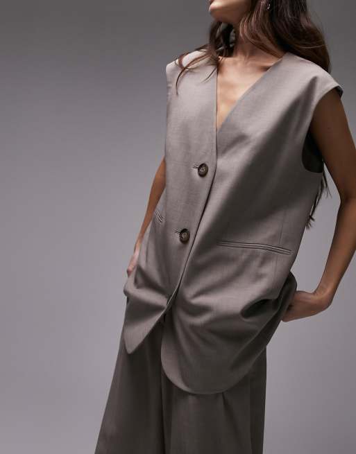 Topshop Tall washed vest jersey midi dress in stone ASOS