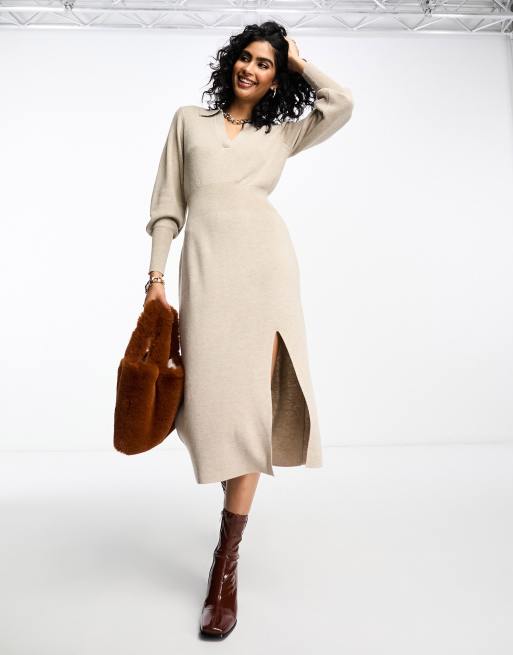 Vila sculpt knit midi dress in beige