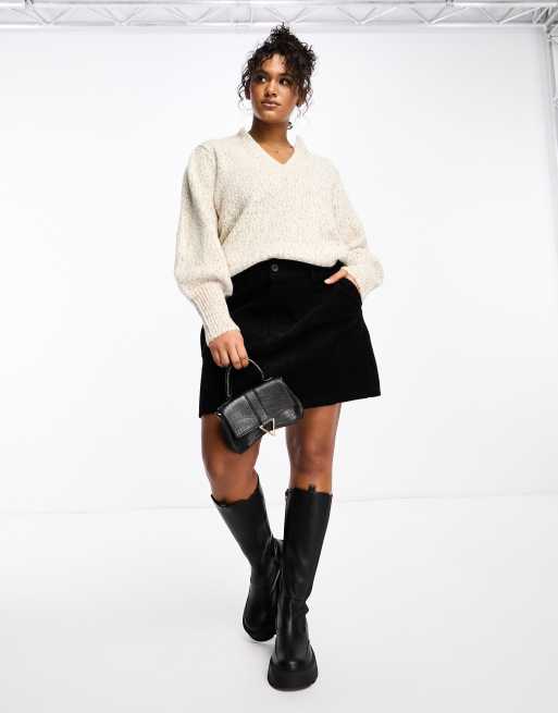 Vila Curve v neck sweater with puff sleeves in mottled beige ASOS