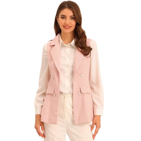 Allegra K Women s Vintage Tweed Vest Open Front Plaid Sleeveless