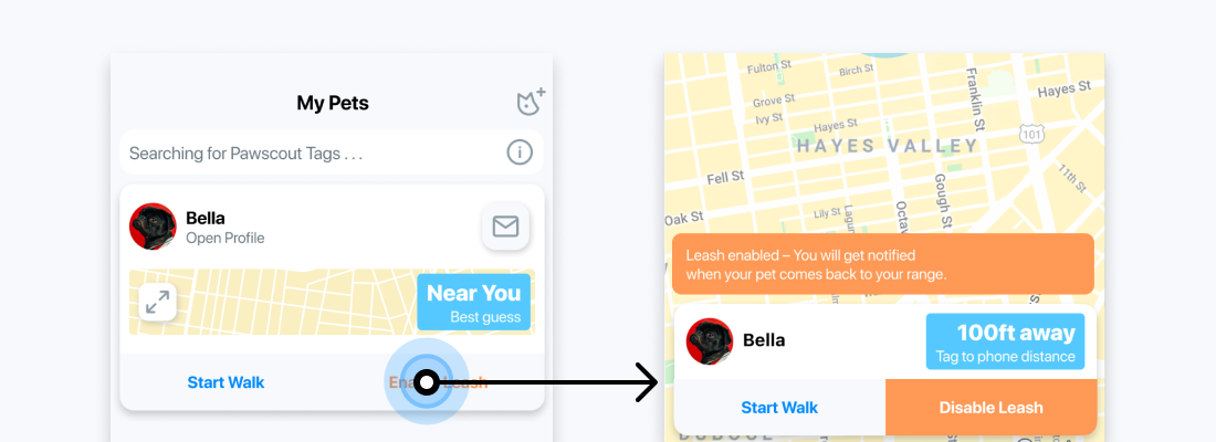 Outdoor Virtual Pet Leash Pawscout Bluetooth Smarter Pet Tag only