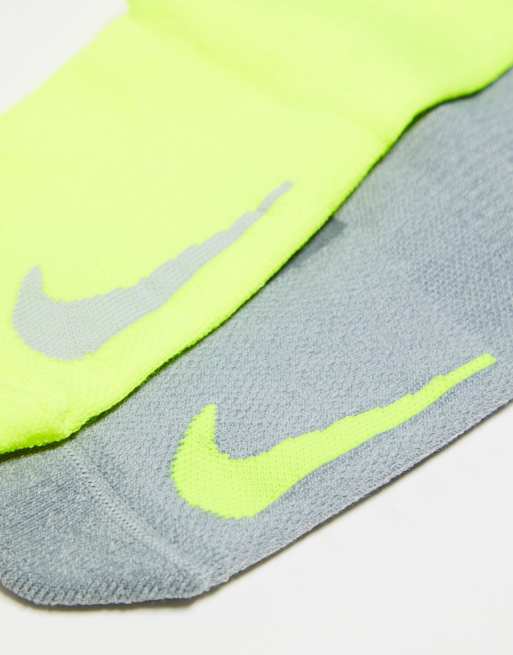 Volt socks nike clearance, Nike Running Multiplier unisex ankle 2 pack socks in grey and volt clearance