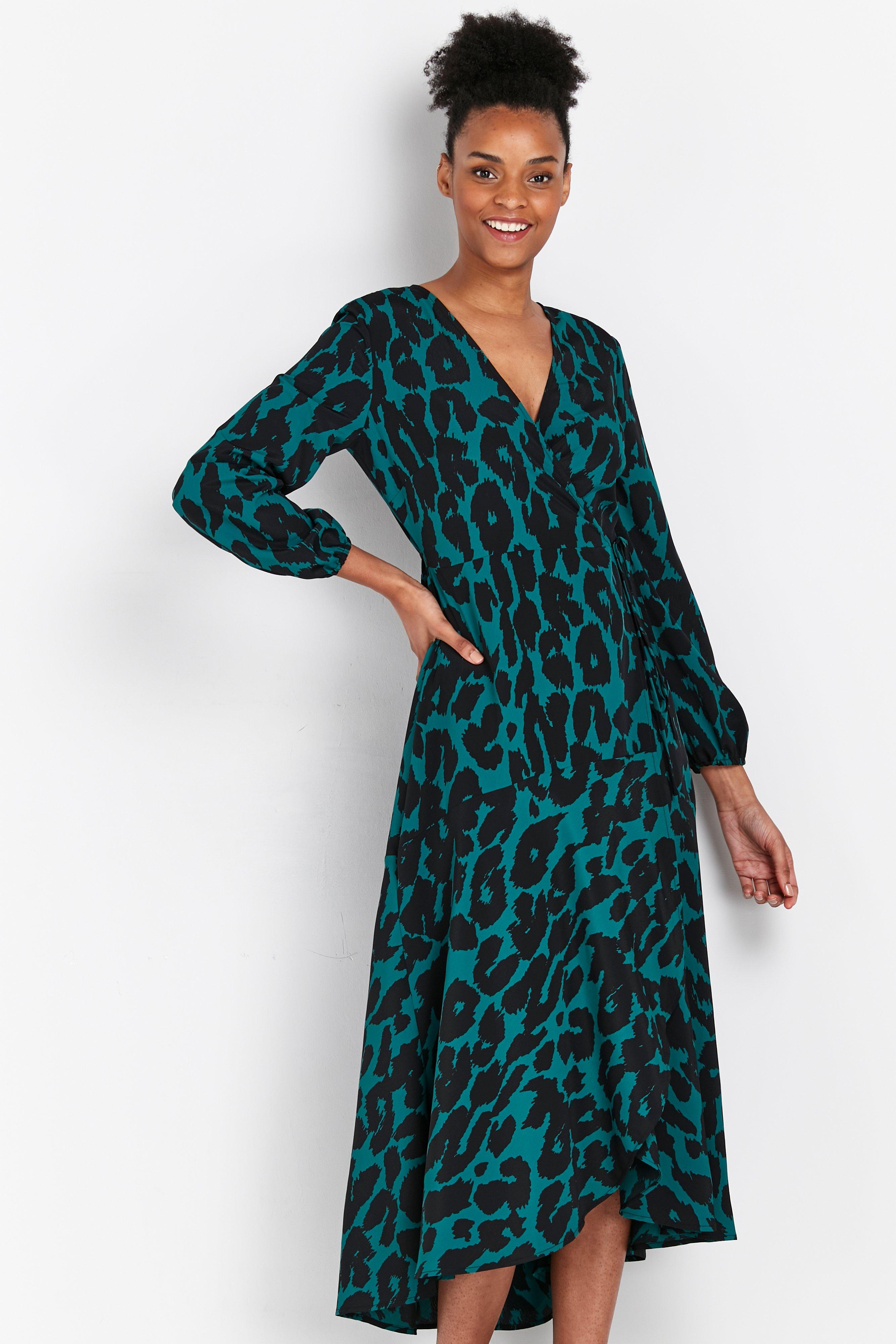 Green Animal Print Wrap Dress
