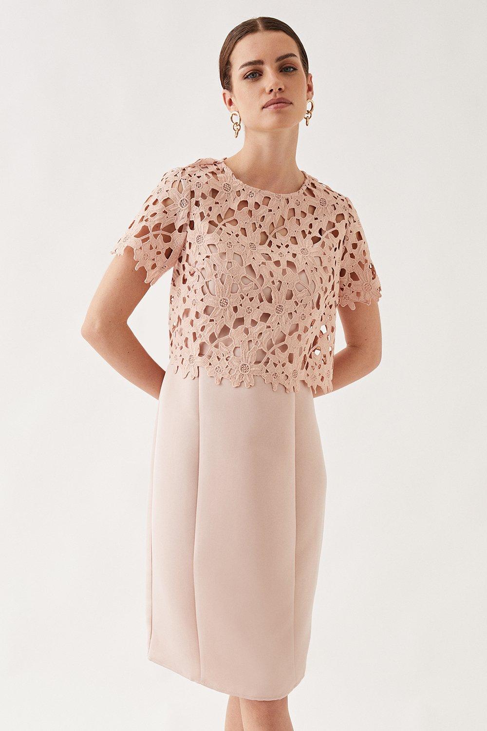 Dresses Petite Lace Embellished Waist Cap Sleeve Midi Dress Wallis