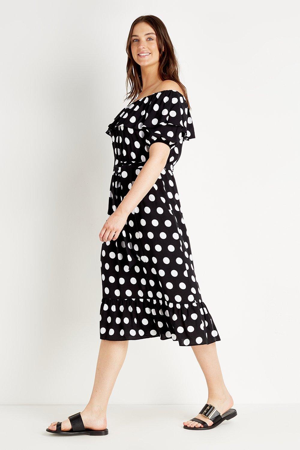 Spot Frill Bardot Dress
