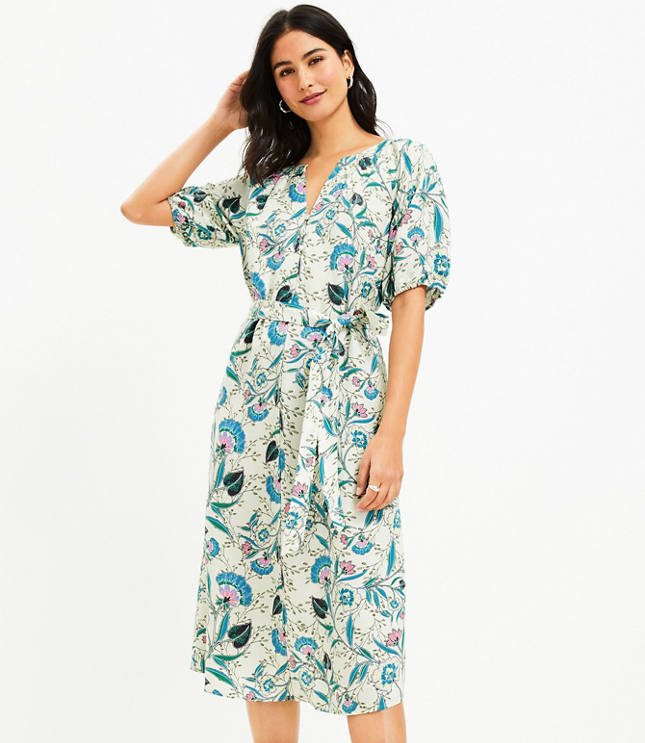 Warehouse bird dress clearance, Floral V Neck Puff Sleeve Midi Dress clearance