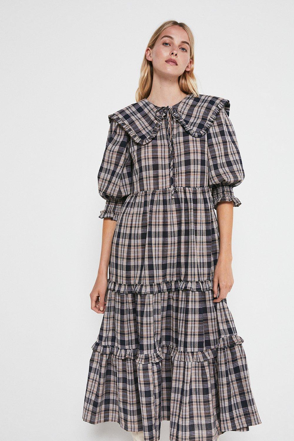 Dresses Check Oversized Collar Midi Dress Warehouse