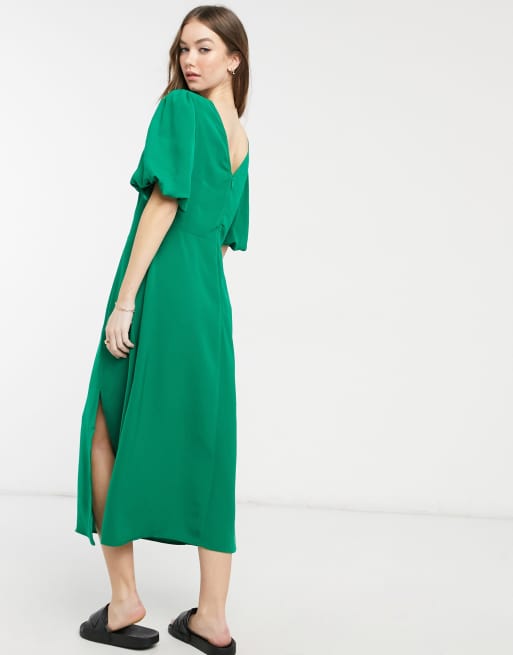Warehouse green midi dress clearance, Dresses Puff Sleeve Splice Check Midi Dress Warehouse Midi clearance