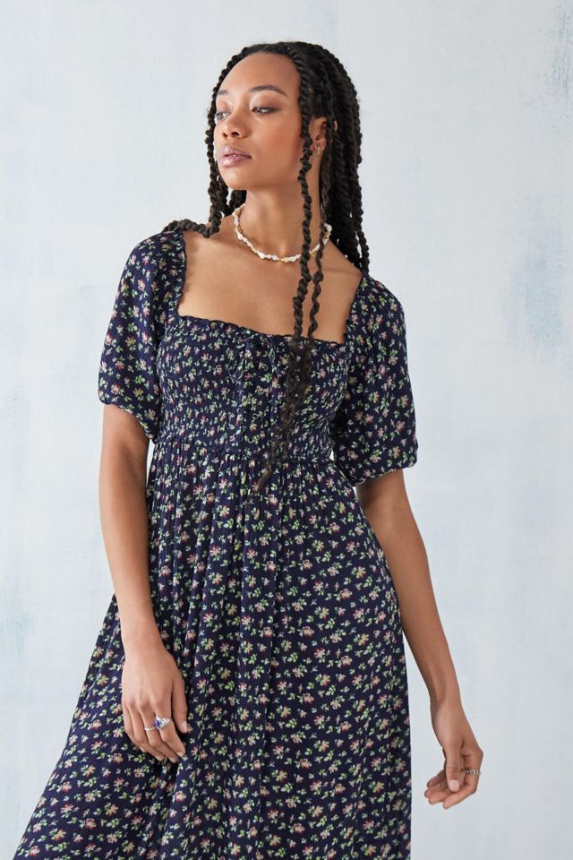 UO Iris Floral Puff Sleeve Midi Dress Urban Outfitters