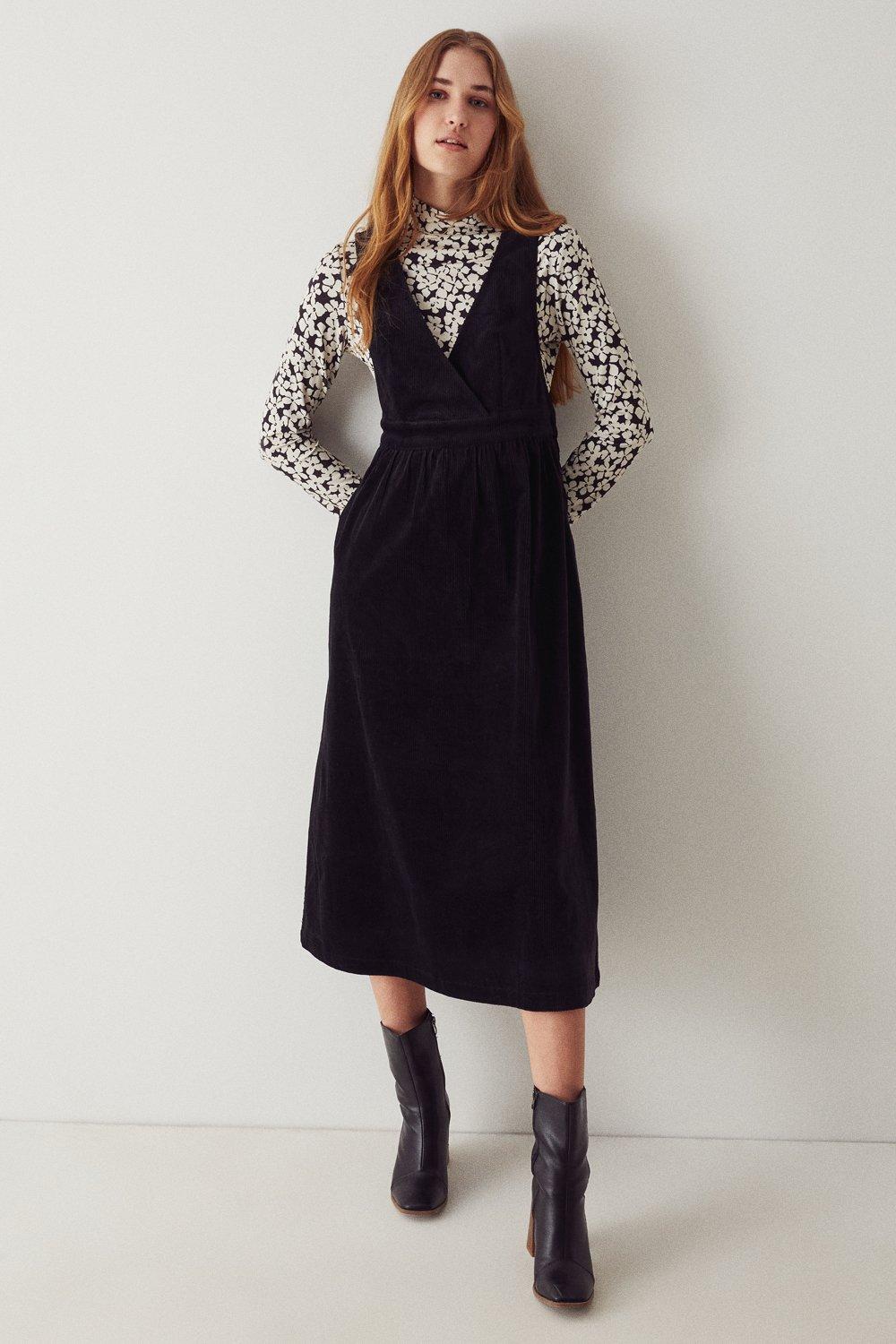 Dresses Cord V neck Pinafore Midi Dress Warehouse