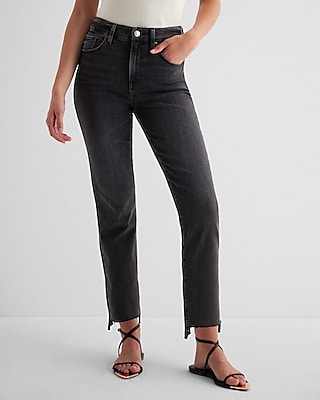 High Waisted Washed Black Raw Hem Wide Leg Jeans Express