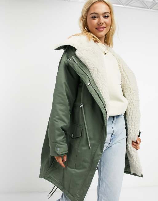 ASOS DESIGN waterfall parka with fleece lining in khaki