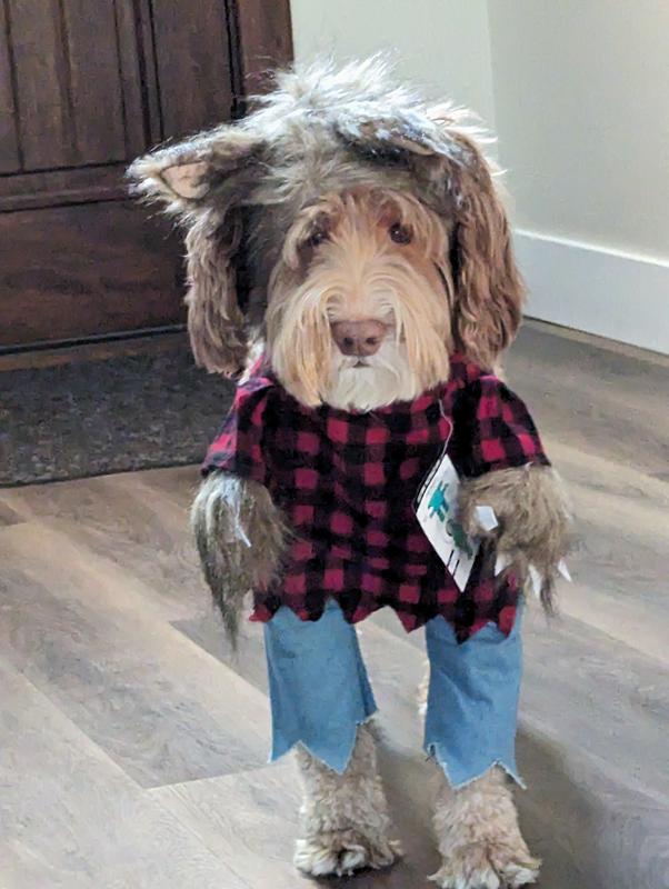 Werewolf Halloween Costume for Dogs Fake Arms Plaid Shirt Denim Pants large eBay