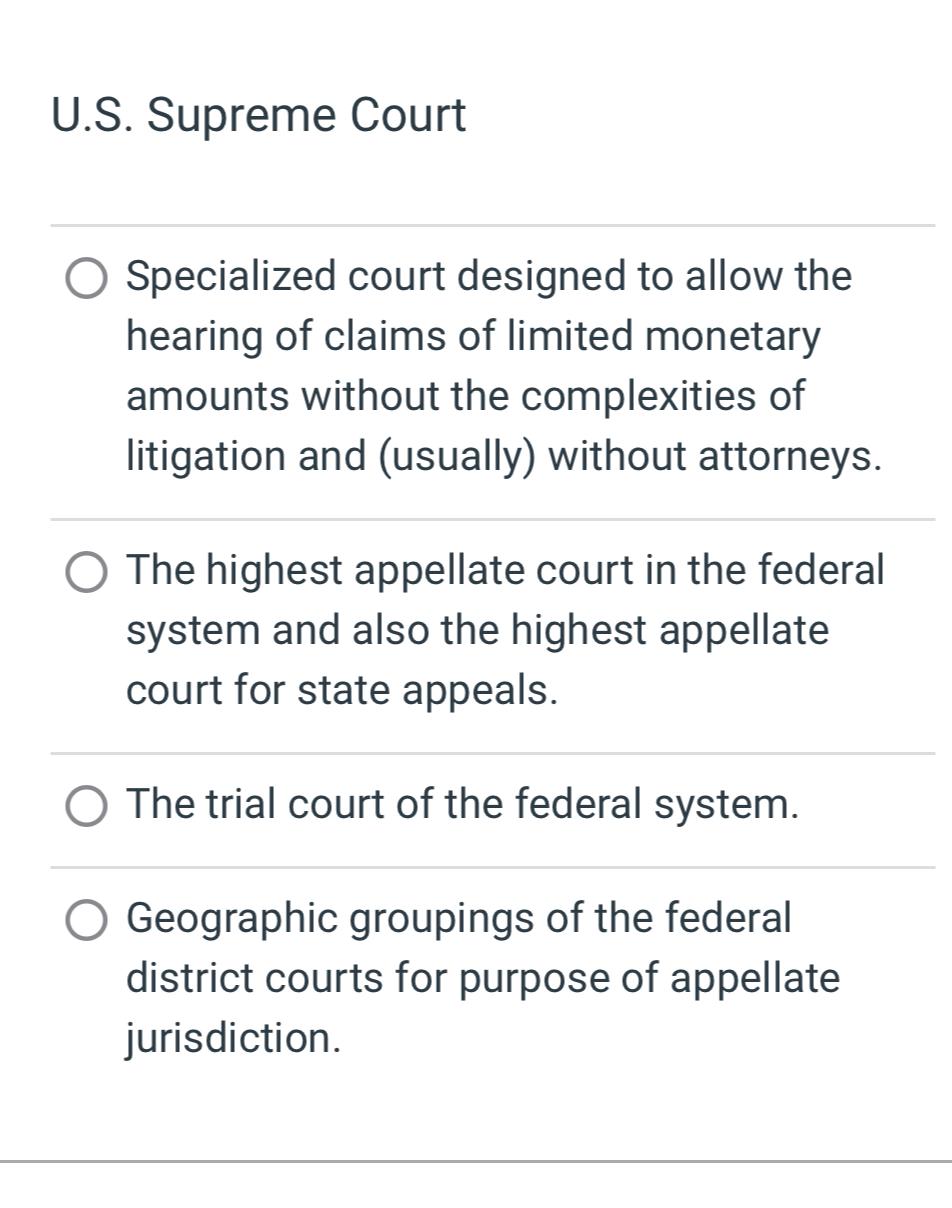 Solved U.S. Supreme CourtSpecialized court designed to Chegg