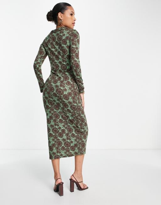 Whistles green floral dress clearance, Whistles ribbed midi polo dress in khaki floral ASOS clearance