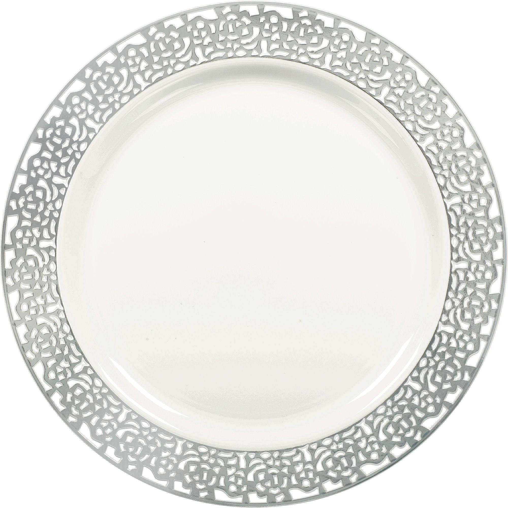 White and silver dinner set clearance, White Silver Lace Border Premium Plastic Dinner Plates 10ct clearance