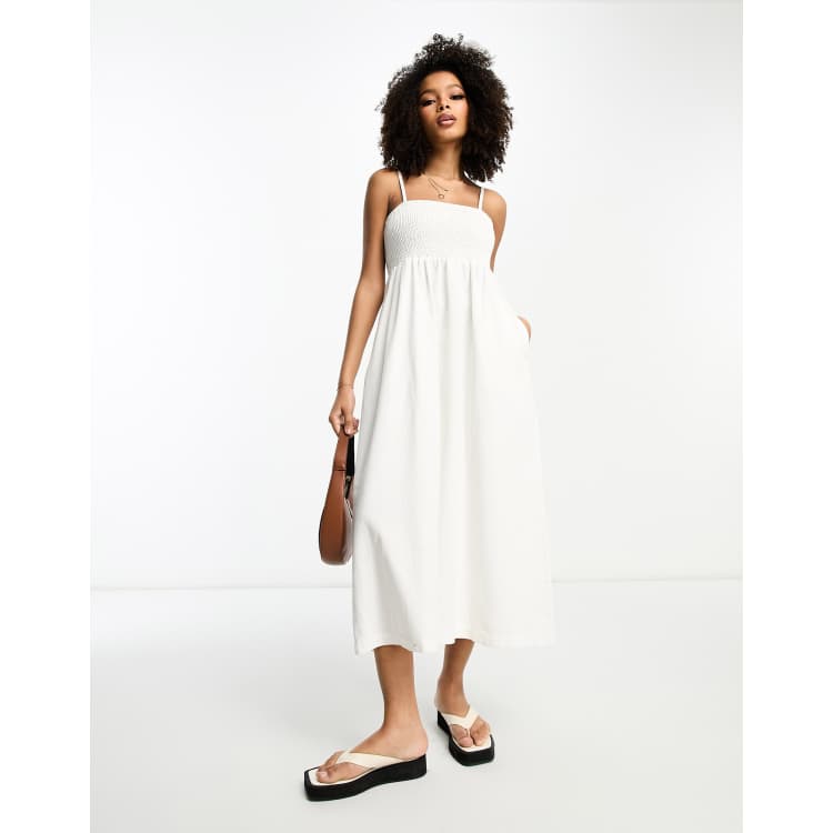 ASOS DESIGN bandeau utility midi pencil dress with contrast top stitch in white