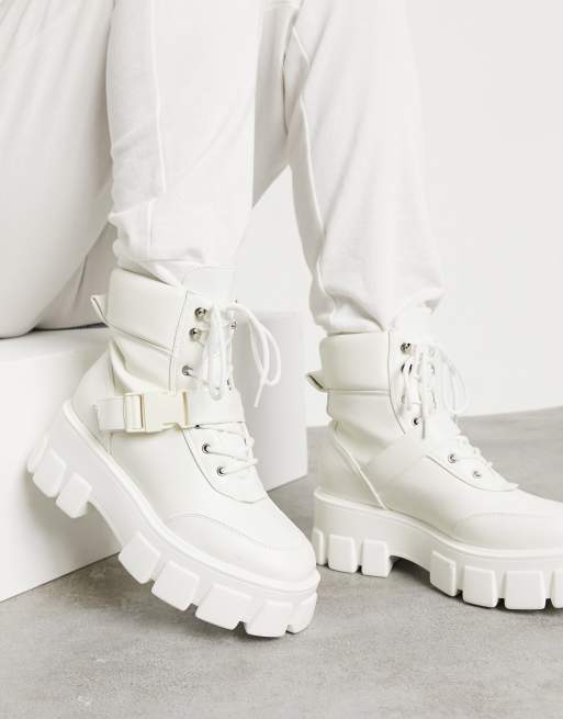 Public Desire Wide Fit Kash chunky boots with buckles in off white