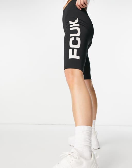 White cut off leggings clearance, FCUK cropped leggings with logo in black ASOS clearance