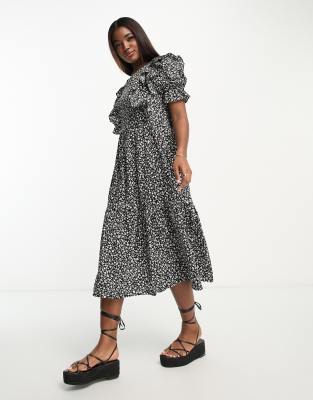 White floral print frill detail midi dress clearance, Floral Print Frill Detail Midi Dress clearance