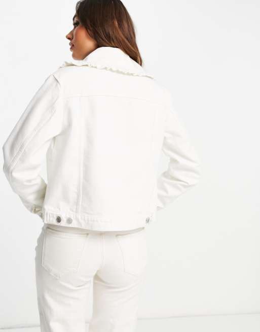 Whistles denim jacket with frill collar in white