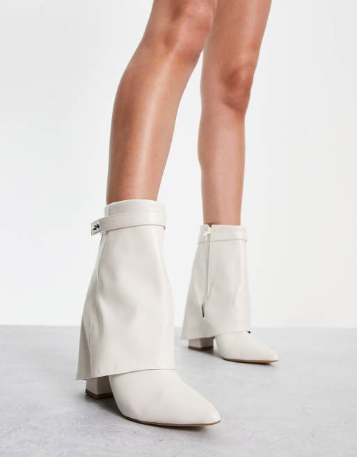 White heeled boots uk clearance, Public Desire Fyre foldover heeled boots in white clearance