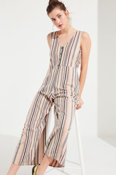 UO Sage Striped Button Down Jumpsuit