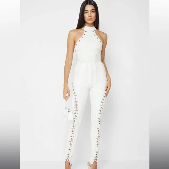 White lace up leggings clearance, Maniere De Voir Pants Jumpsuits Maniere De Voir Lace Up clearance