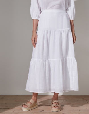 White linen tiered skirt clearance