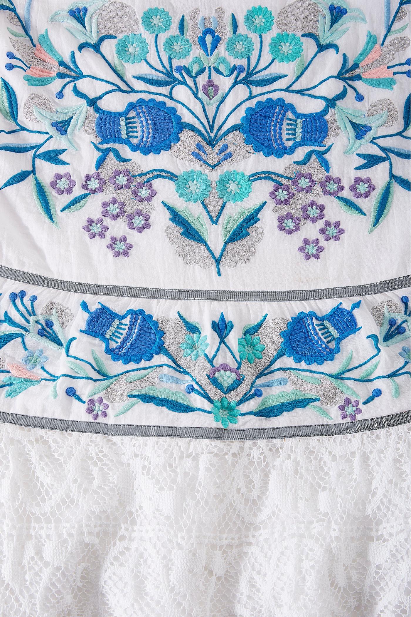 Embroidered And Embellished Lace Inset Maxi Dress White Blue