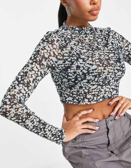ASOS DESIGN Hourglass mesh high neck long sleeve top in blue