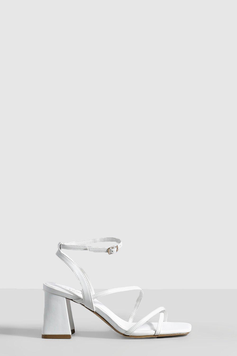 Mabel White Pu Ankle Tie Mid Block Heeled Sandals Public Desire