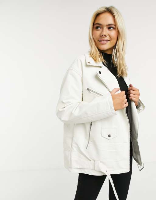 ASOS DESIGN longline oversized faux leather biker jacket in white