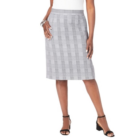 Jessica London Women s Plus Size Tummy Control Bi Stretch Pencil Skirt 30 W Black Ivory Glen Plaid