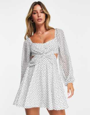 ASOS DESIGN long sleeve cut out mini dress in white polka dot