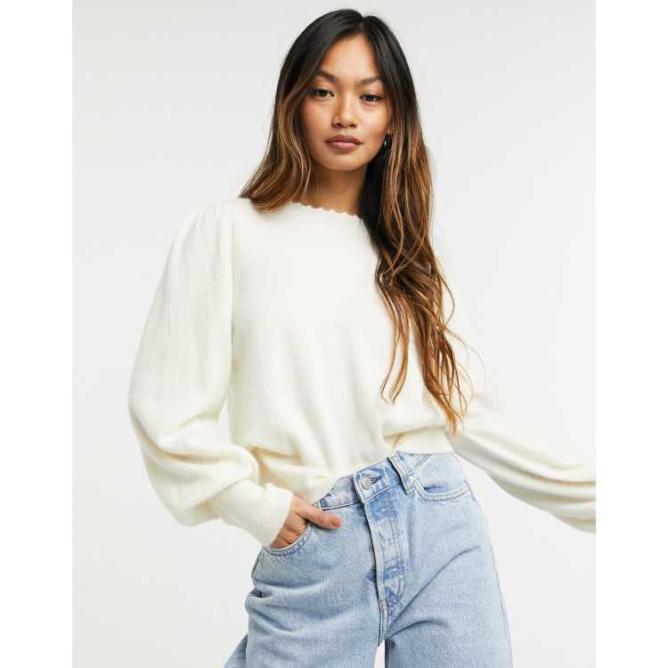 Ever New super soft brushed knit puff sleeve sweater in ivory