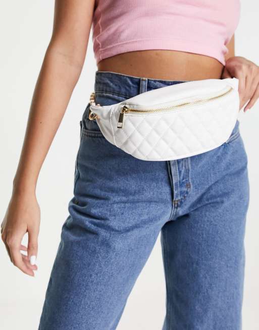 ASOS DESIGN quilted chain detail fanny pack in white
