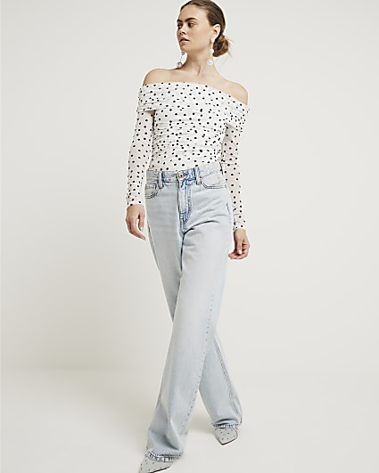 White ruched bardot top clearance, Bardot Tops Off The Shoulder Tops River Island clearance