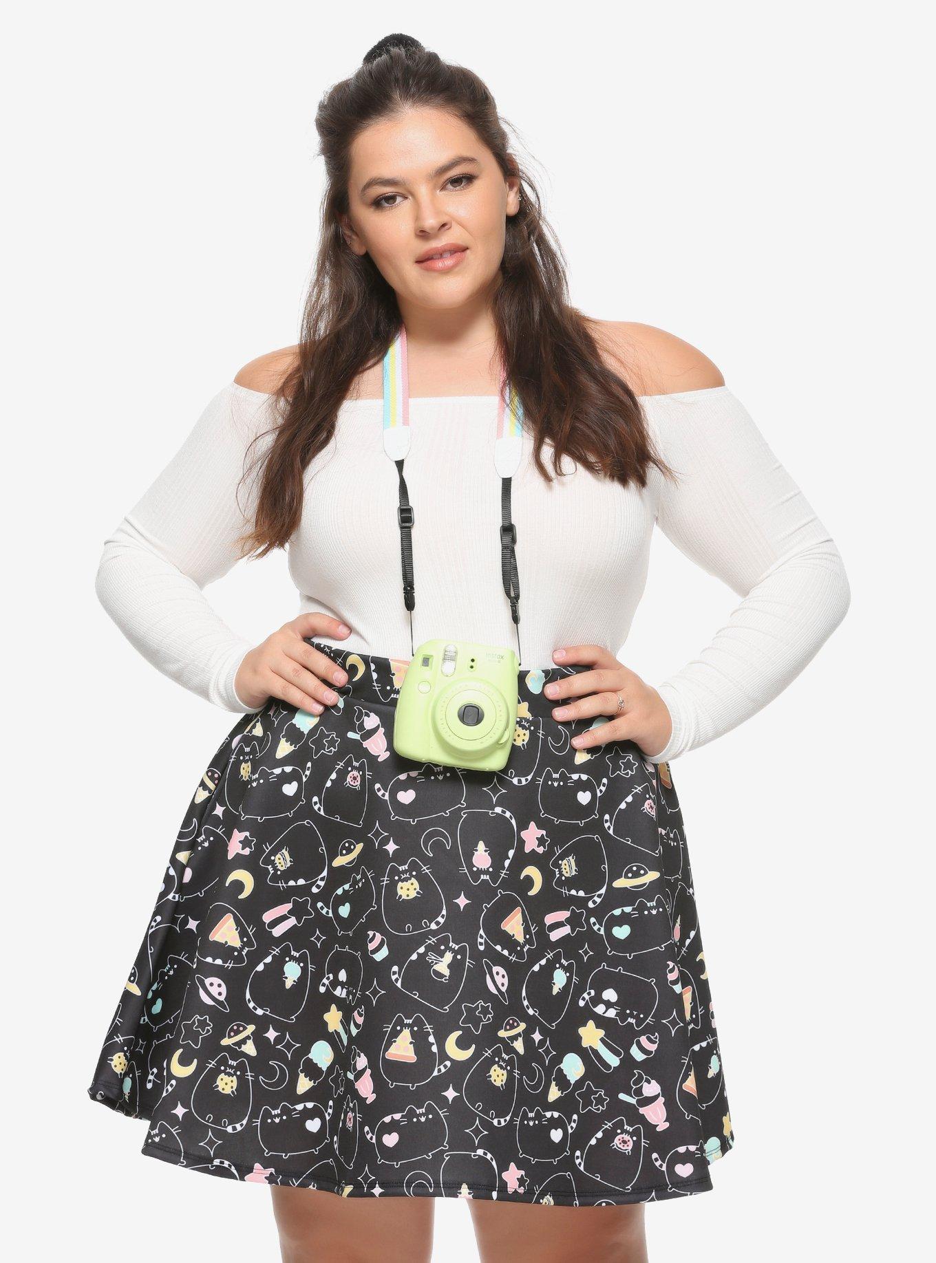 Pusheen Black White Snacks Skater Skirt Plus Size Hot Topic