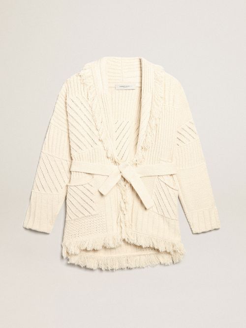 Belted cardigan in papyrus colored cotton Golden Goose